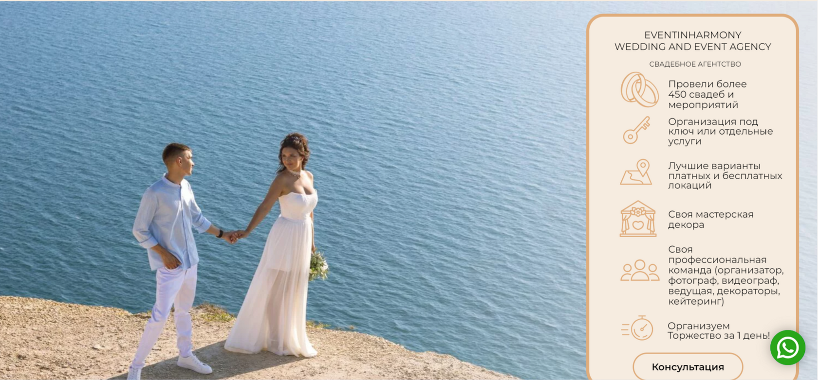 Агентство получило продающий сайт, полностью адаптированный под их бизнес. Благодаря стильному дизайну с акцентом на свадебные фотографии и удобному интерфейсу, сайт помогает привлекать новых клиентов и эффективно продвигать услуги через рекламные платформы.